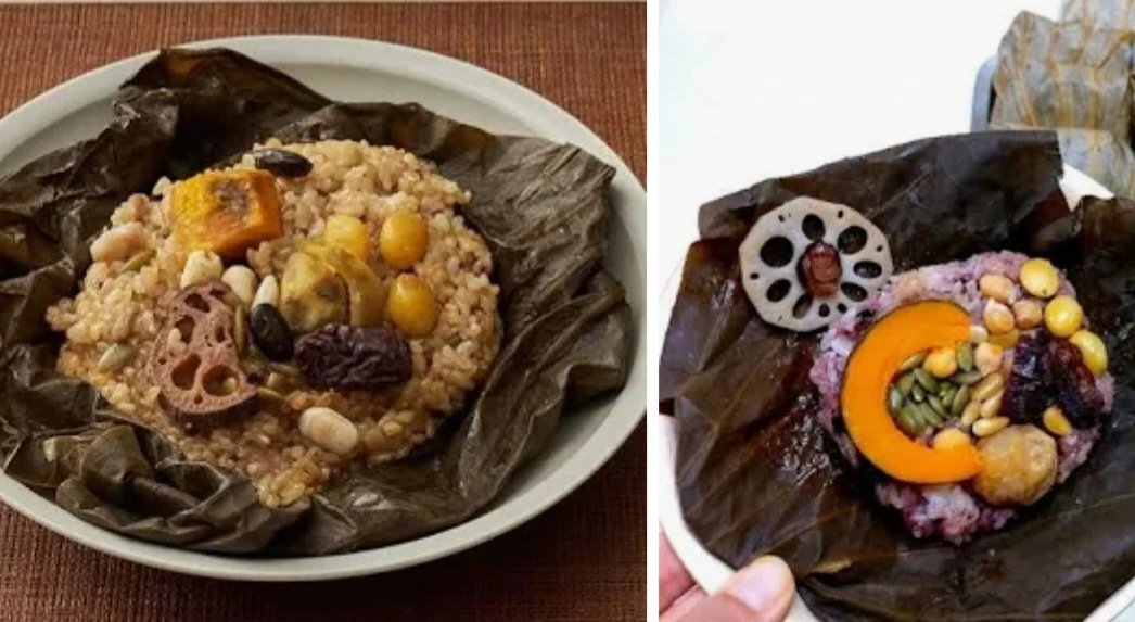쫄깃한 찹쌀에 갖가지 견과류와 곡식을 넣고 연잎으로 싸서 찐 연잎밥은 은은한 향이 배어들어 특별한 풍미를 낸다.