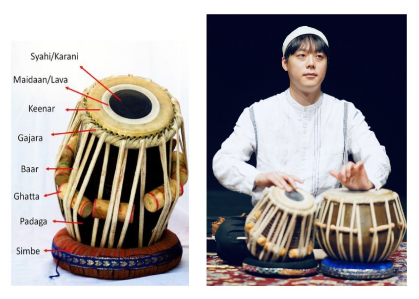 자, 이제 ‘Thin’에 ‘Ge’를 같이 타격해보자. 종과 북을 동시에 연주하는 것이다. 그 소리가 바로 ‘Dhin’이다. 타블라의 일곱 단어 중에서도 가장 웅장하고 육체의 깊은 곳까지 공명하는 소리다.