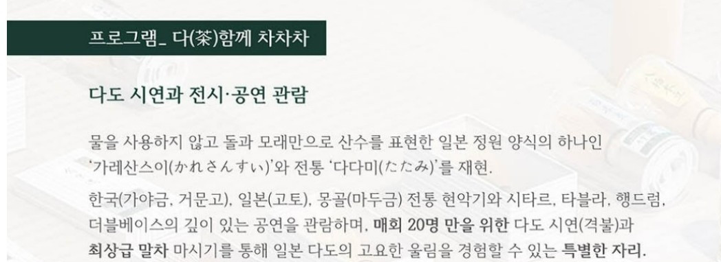 명상에 대한 글을 쓰다 보니 문득 작년 강릉에서의 한 공연이 떠오른다. 인도음악과 다도를 한 무대에 올리는 시청각 퍼포먼스였다. 강릉아트센터에 일본에서 30년간 다도를 수련한 윤삼웅 선생님과 시타르 연주자, 그리고 내가 초청되었다. 그날의 연주는 이상할 만큼 기억나지 않는다. 하지만 윤삼웅 선생님의 몸짓과 행위만은 지금도 선명하다. 그는 무대에 오르기 전, 차 도구 하나하나를 정갈히 닦고, 물을 붓고, 찻잎을 올리는 모든 동작을 마치 의식처럼 수행했다. 그 과정에는 일말의 꾸밈도, 서두름도 없었다. 다관을 들어 올리는 손끝의 각도, 물줄기의 높이, 찻잎이 우러나는 시간까지 모두 하나의 호흡 안에 있었다. 그렇게 우러난 차의 맛은 놀라울 정도로 깊고 맑았다. 그러나 그 맛이 특별했던 이유는 재료나 기법 때문이 아니라, 몰아일체의 경지에서 나온 행위의 결과물이었기 때문이었을 것이다. 나는 그분이 차를 끓이는 것이 아니라 차가 그분을 통해 스스로 끓고 있다는 느낌을 받았다. 명상이라는 개념이 물질적인 형태로 구현된다면 바로 그 장면이었을 것이다. 다도를 통해 드러난 하나의 명상이, 내게 연주의 본질에 대한 깨달음을 남겼다.