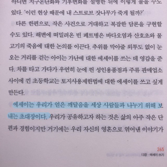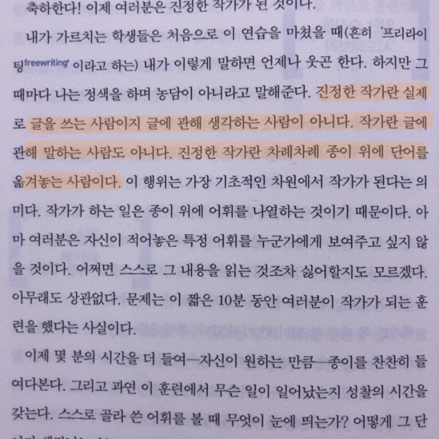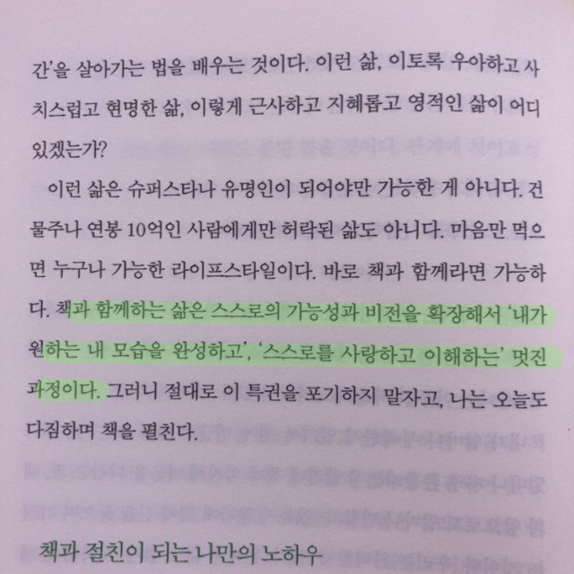 활용과 이해와는 별개로 나의 취향과 어울리는 문장에 밑줄을 긋는다. 앞에서 누누이 말했지만, 독서는 나를 찾아가는 과정이다. 여기에 도움을 줄 만한 문장이라고 판단되면 밑줄을 긋는다. 내가 기존에 가지고 있던 생각, 취향, 가치관과 부합하거나 부합하지 않는 문장이다.