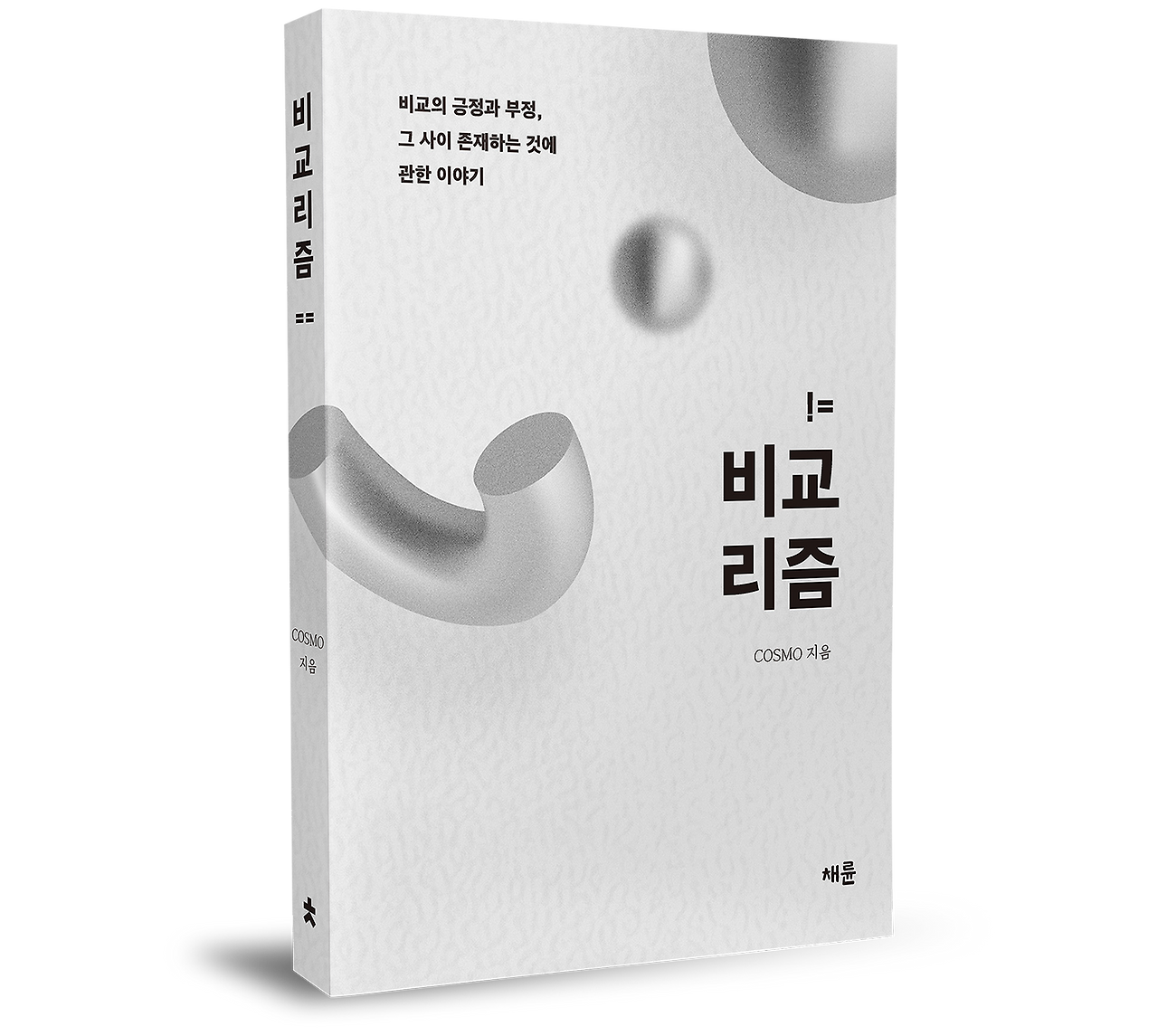 비교의 긍정과 부정, 그사이 존재하는 것에 관한 이야기. 어떤 대상이든 관계를 정확하게 파악하는 데 비교만큼 유용한 개념은 없다고 생각합니다. 하지만 비교의 부정적 영향력도 분명히 존재합니다. 『비교리즘』은 이런 비교를 어떻게 받아들여야 할지 같이 고민해 보자는 취지에서 시작했습니다.