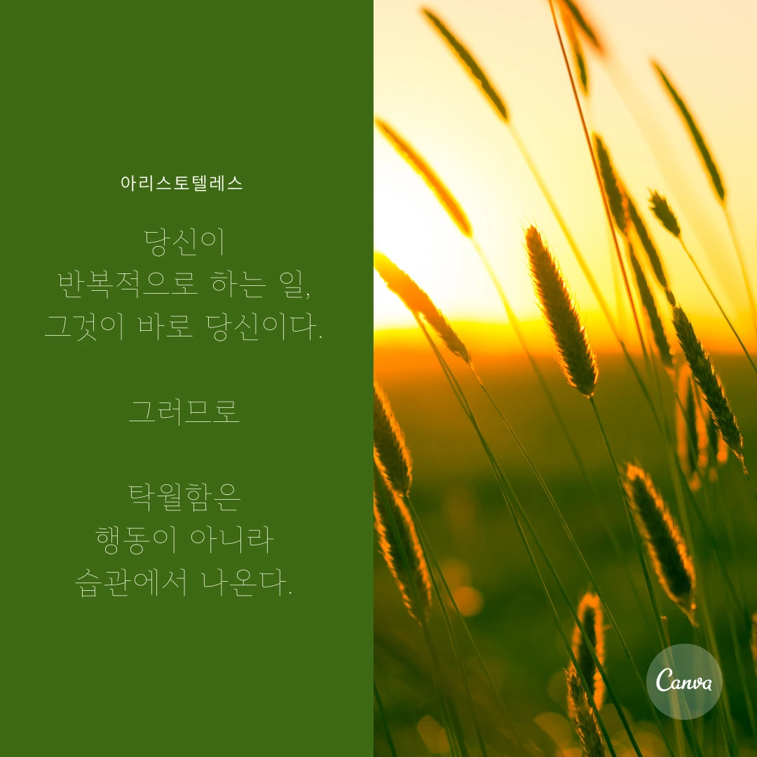 탁월함은 습관에 기인한다는 아리스토텔레스의 격언은 이러한 의미에서 한 말이 아닐까?