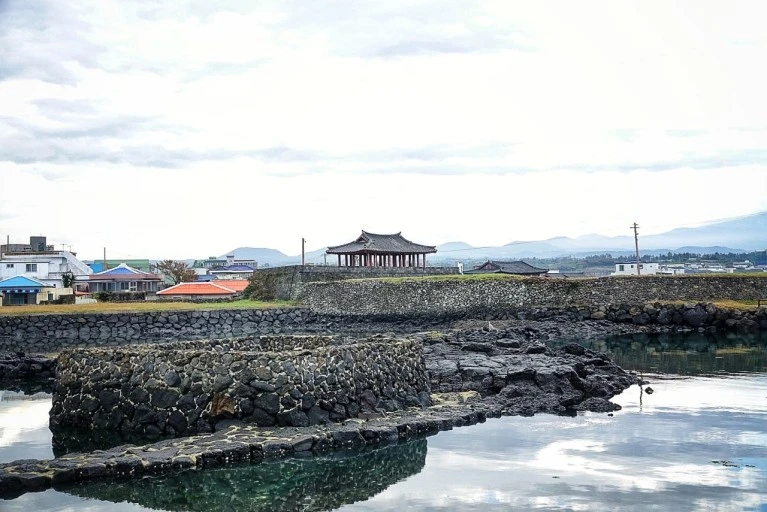 조천포구는 사진에 보이듯 여가 발달해 동풍과 북풍에 안전했기 때문에 육지와 연결하는 관문 역할을 해왔다. 그러나 선박에서 내려진 물자들을 다시 육로를 이용해 제주성안으로 옮기려면 많은 경비가 소요되었다.. 그 이유로 노봉 김정이 제주성안으로 물자이동이 가까운 수심깊고 동풍에 안전한 화북에 축항을 하게 되었고 그 뒤로 조천포구는 사그라지기 시작했다. 화북에 있는 지명 고우니모루(고마장)은 배로 들어 온 물자들을 나르기 위한 말들을 세워두던 기지 같은 곳인데 이곳 말을 관리하는 사람은 그 기세가 등등했다고 한다! 다들 좋은 말을 얻어 쓰고 싶었을테니!