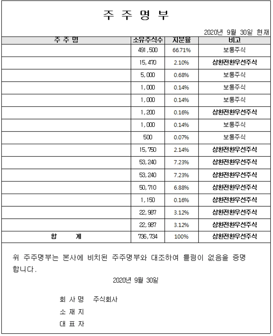 3. 법무법인에 공증인가받은 정식 주주명부에 등기되었는지 모른다.