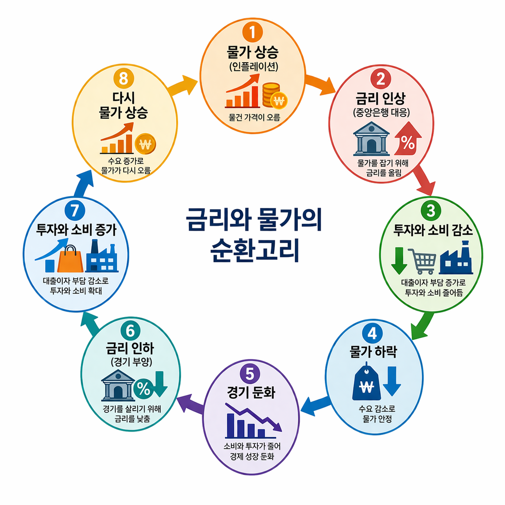 예를 들어, 한국은행이 경기 과열과 인플레이션을 억제하기 위해 금리를 인상하면,