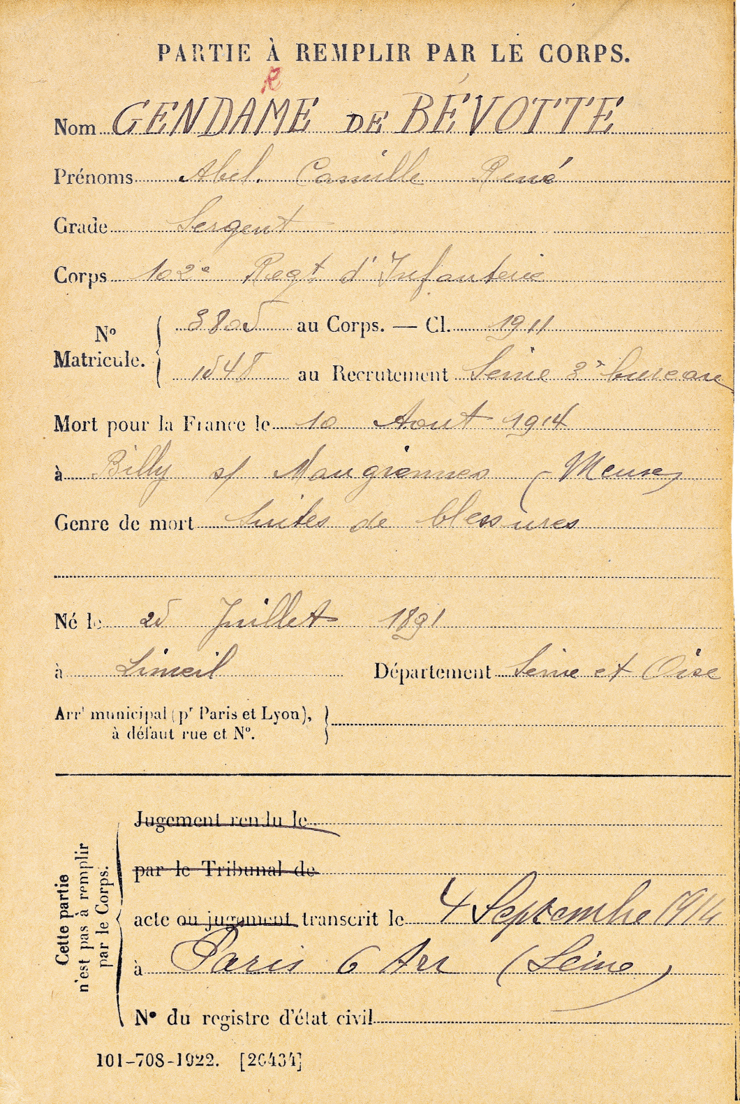 사랑하는 내 수탉 꼬꼬씨, 당신이 정말 그리워요. 당신을 직접 보고 키스해 준 지 10년은 지난 것 같아요. 잃어버린 시간을 되찾고 싶어요. 프랑스군은 몽제후에 인접 지역에서 후퇴했다고 해요. 우리 엄마는 이제는 갑자기 부드러워지셔서 당신의 참전을 원망하지 않아요. 엄마는 꾸드레에서 일꾼들과 도대체 왜 엄마만 피난을 안 가냐고 욕하는 친구분들과 함께 있어요. 원하시는 만큼 거기 남아 계실 거예요. 쟝 시숙에게서는 소식이 없어요. 더글라스의 동생은 뮬우스에서 사망했어요. 당신은 그 이와 함께 브릿지 게임을 했었어요. 뚤 또는 베르됭 왼쪽에 있는 라부로스에서 했던 저녁식사 후에 말이에요. 기억하시나요?
