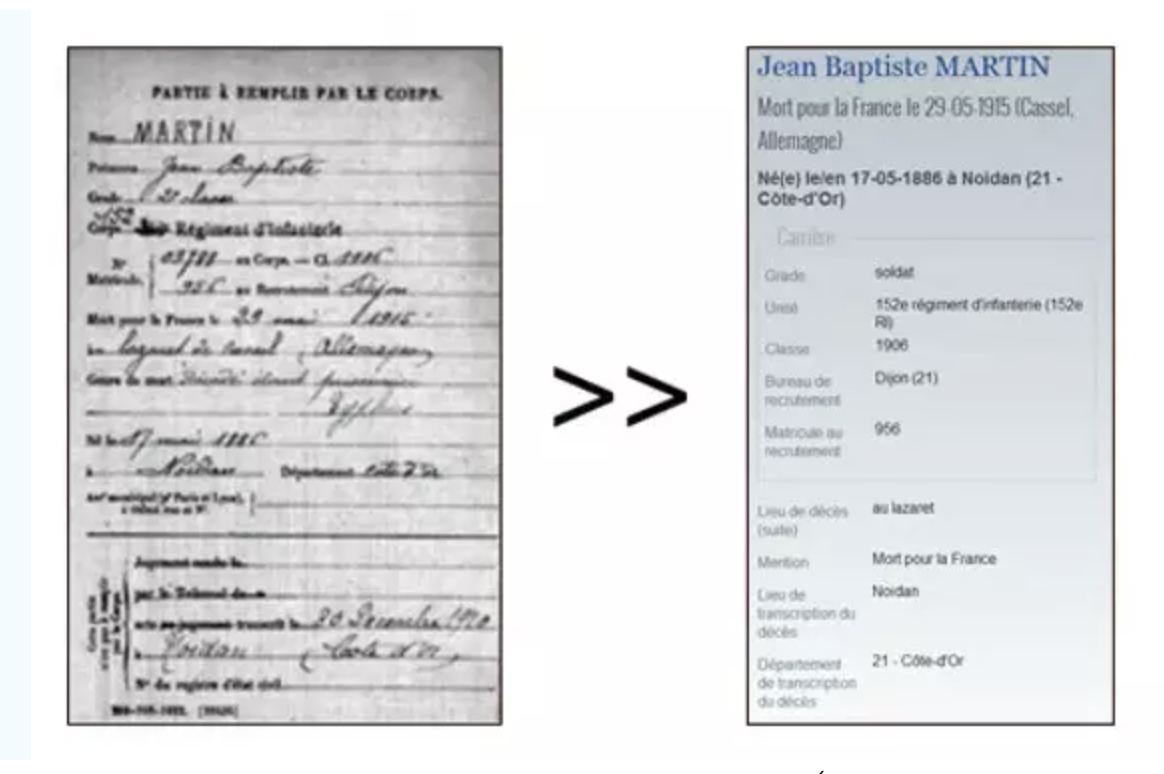 프랑스 정부는 1차 세계대전 백 주년인 2013년부터 사망자들의 명단을 데이터화해서 민간에도 열람하고 있습니다.