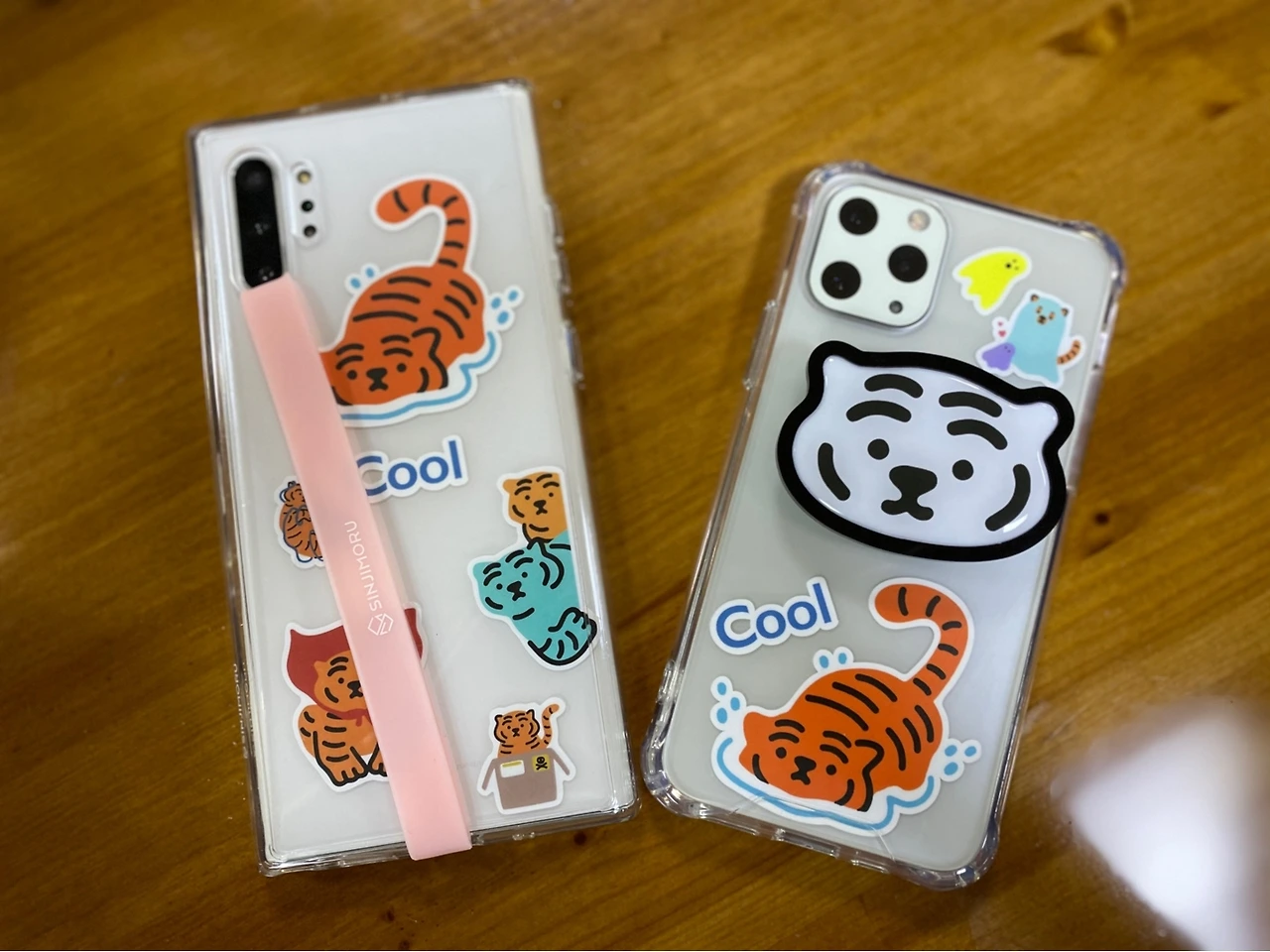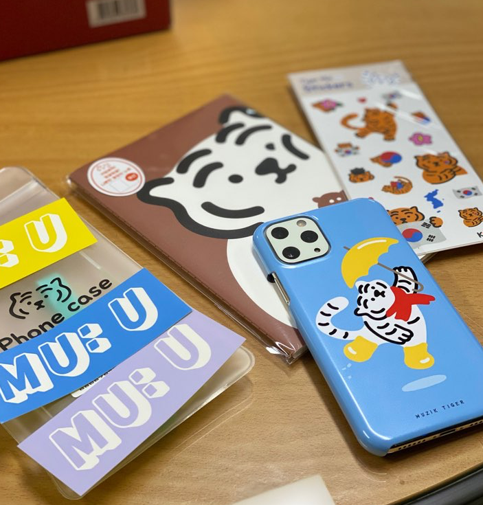 하지만 하늘은 스스로 돕는 자를 돕는다고 하였나. 짬뽕밥 한 술에 찹쌀 탕수육 한 점을 조화롭게 먹던 평화로운 점심시간, 친구가 의문의 사진 2장을 보내왔다. 그건 놀랍게도 뚱랑이었다. 글쎄 뚱랑이 팝업스토어가 열렸다고 했다. 이럴 수가. 심지어 거긴 교보문고보다 회사에서 더 가까운 백화점이었다. 무려 몇 주 전부터 하고 있었는데 하필이면 당장 내일까지밖에 안 한다고. 그 좋아하는 탕수육도 마다하고 사진 속 뚱랑이들을 빠르게 스캔했다. 세상에. 적어도 10개는 넘는 폰케이스가 날 기다리고 있었다. 그 누구보다 빠르게 짬뽕 국물을 원샷하고 백화점으로 달려갔다. 손님은 아무도 없었다. 오히려 갑작스러운 손님의 등장에 직원은 조금 놀란 듯했다. 몇 주 동안 뚱랑이 굿즈를 너무 오랫동안 고민한 나머지, 나는 직원 같은 손님이 되어있었다. 자연스럽게 같이 간 회사 언니에게 이 그립톡은 색상이 세 가지인데 흰색이 깔끔하지만 주황색이 가장 호랑이스러운 거 같다며 묻지도 않은 설명을 해댔다. 이 폰케이스는 똑같은 패턴의 그립톡이 있는데 그냥 동그란 모양이라서 덜 끌린다, 이 스티커는 리무버블이라 뗐다 붙였다 하기 좋다 등등..
