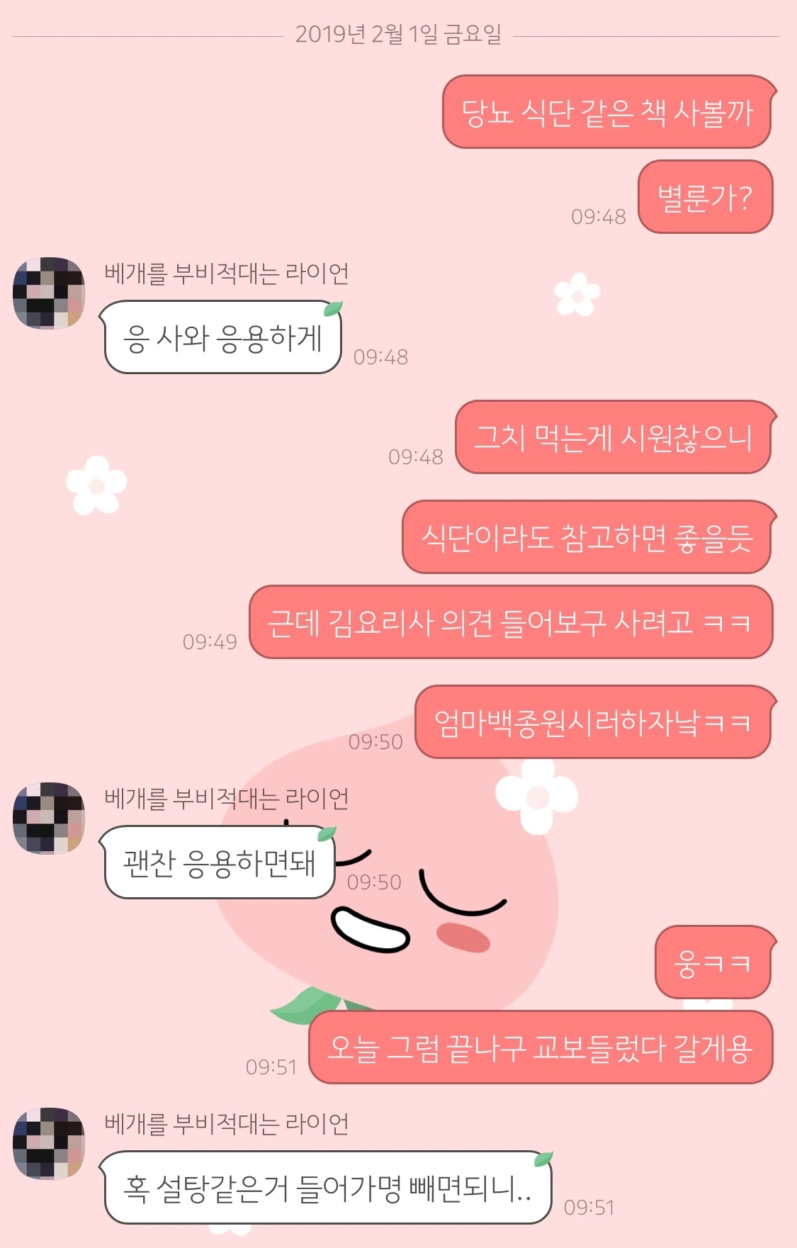 매일 당뇨와의 전쟁을 치르던 엄마 아빠가 시간이 갈수록 지쳐가는 것이 눈에 보였기 때문이다. 행여나 식단 책을 사는 것이 엄마에게 또 다른 부담이 될까 걱정도 되었다. (참고로 엄마는 백종원을 싫어한다. 백종원이 티비에만 나오면 아빠가 새로운 메뉴를 요구한다는 이유에서..) 일단 카톡으로 의견을 물어보니 엄마의 반응도 나쁘지 않았다.