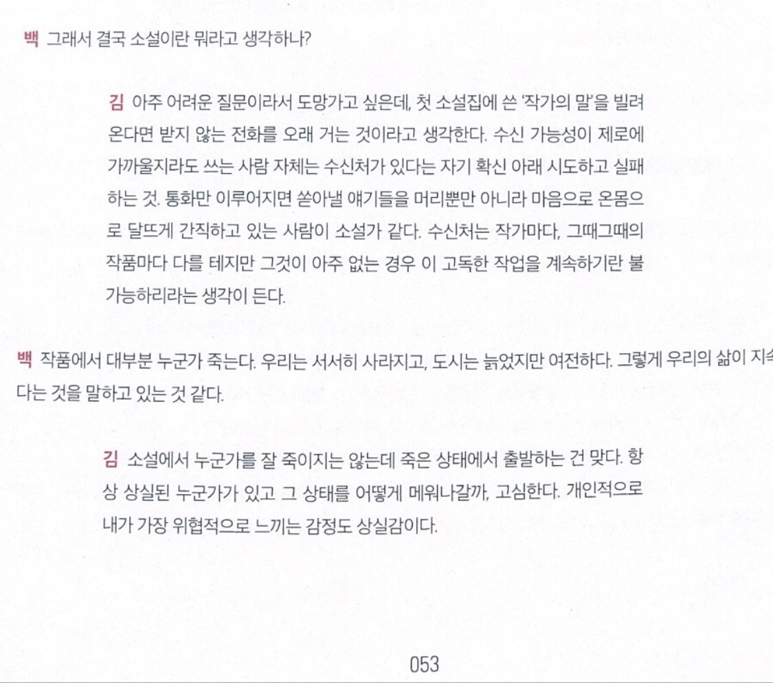 소설가 김금희는 소설이란 ‘받지 않는 전화를 오래 거는 것’이라고 말했다. 수신 가능성이 희박하다고 해도, 어쨌든 수신처가 있다는 확신 속에서 통화만 이루어지면 쏟아낼 이야기를 온몸으로 간직하고 있는 사람이 소설가라고 말하면서.