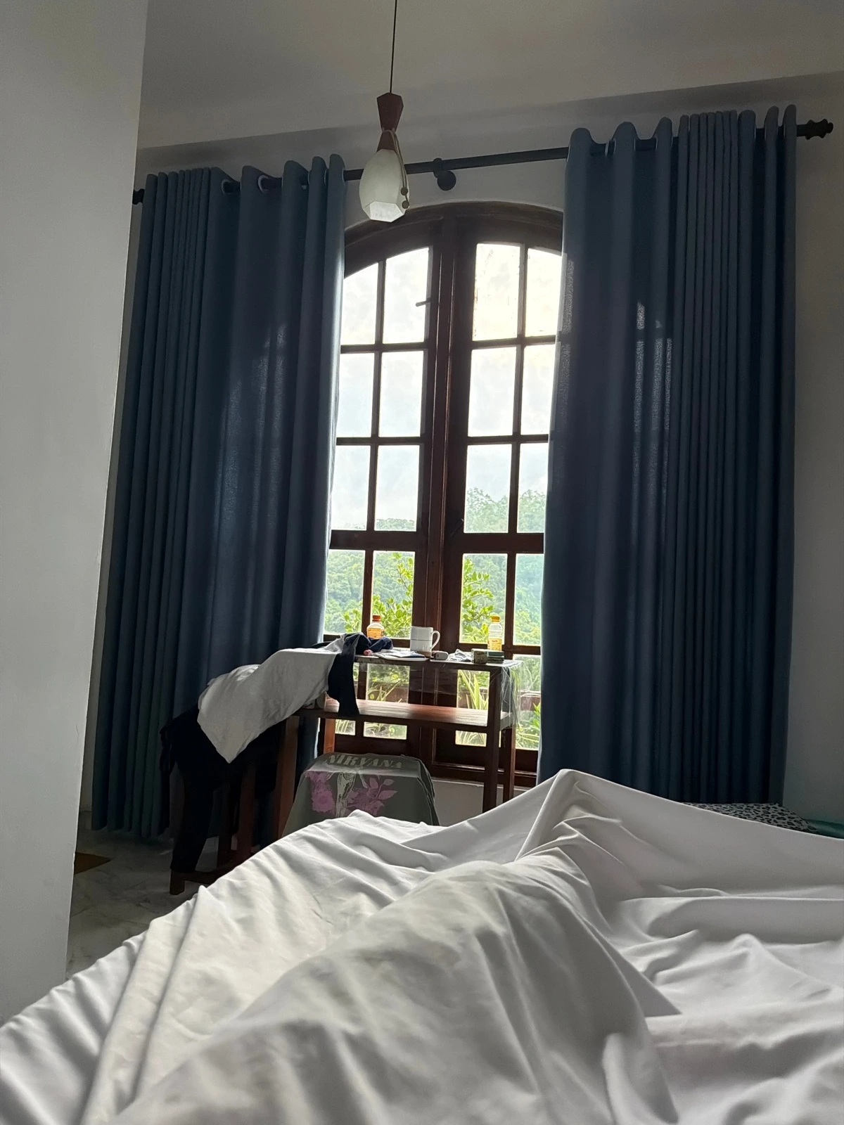 쉽지 않은 버스 여행과 오르막 덕분에 짐을 풀고 서도 그 혼잡한 시내로 나갈 엄두가 나지 않았다. 다행히 숙소는 마음에 들었고 나가지 않아도 좋을 만큼 유럽같은 창문 밖으로 울창한 산이 내다보이는 책상이 있었다. 난 이런 정갈한 책상이 있는 방이 좋다. 내다보이는 초록색 식물들이 단 하나도 겹치는 것이 없이 다양하다. 도시의 메인인 호수가 보이는 방향은 아니었지만 정확한 남향이다.