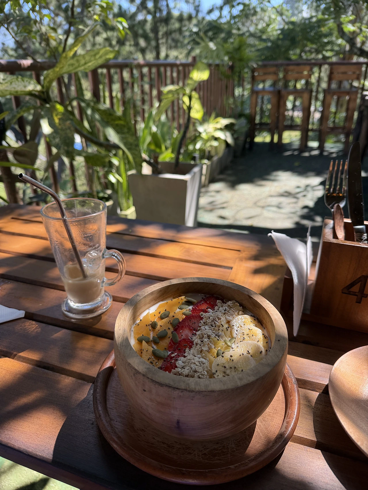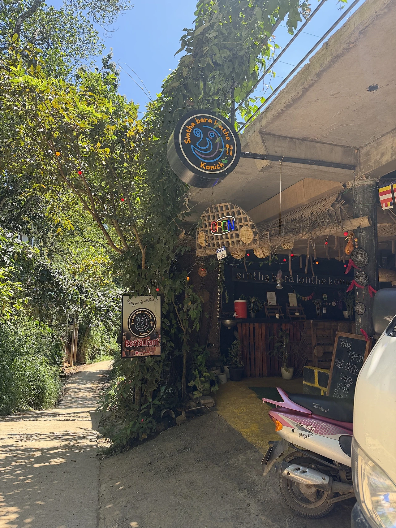해가 뜨자마자 출발해 해가 중천에 떴을 때야 시내로 내려왔다. 갈 때는 툭툭을 탔지만 올 때는 여유롭게 걸어온다. 툭툭이와 차를 피해 한 켠으로 섰다가, 기념품 가게를 구경하고, 우연히 마주친 요가원, 마사지샵 정보를 찍어두고, 셀카를 찍었다가 하늘 풍경을 찍었다가, 게임 앱을 켜놓고 걸음 수를 올린다. 동네 개들과 친한 척도 해보다가 40분 넘게 걸어 집으로 돌아가는 길은 하나도 지루하지 않다.