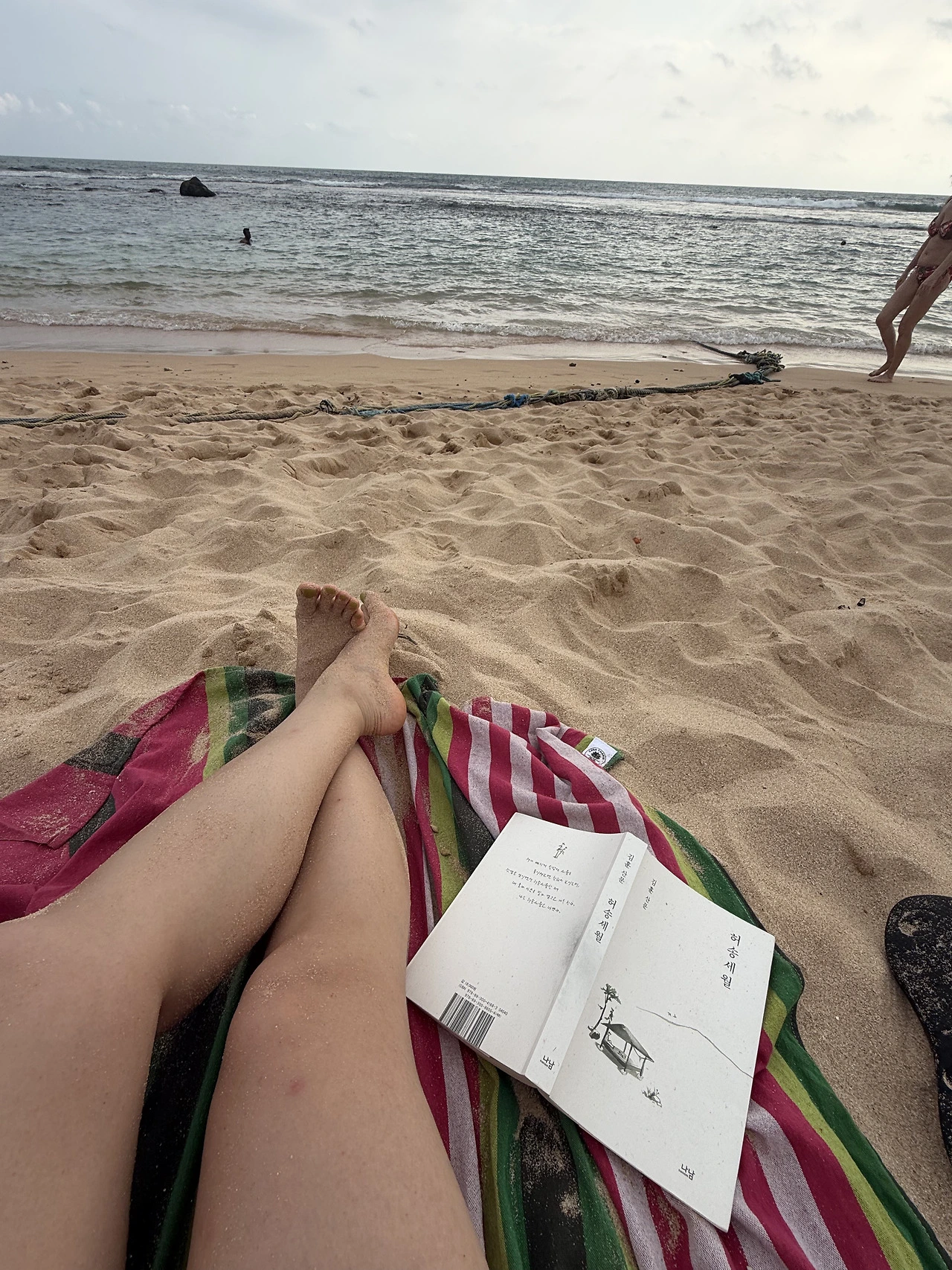 언제쯤 바다 풍경이 나올까. 창밖으로 펼쳐지는 코코넛 가로수 뒤로 펼쳐지는 누런 논밭과 초록 평야, 길가의 소들이나 전선 위의 원숭이, 남쪽으로 향할수록 뜨거워지는 해에 빛나는 풍경들에 라디오 하나 틀어주지 않는 택시 안에서 잠이 오지는 않았지만, 나도 모르게 잠깐 곯아떨어졌다가 깨고 나서는 심심한 나머지 오랜만에 에어팟을 한쪽 귀에 꽂았다. 그리고 설레는 숙소에 도착했다.