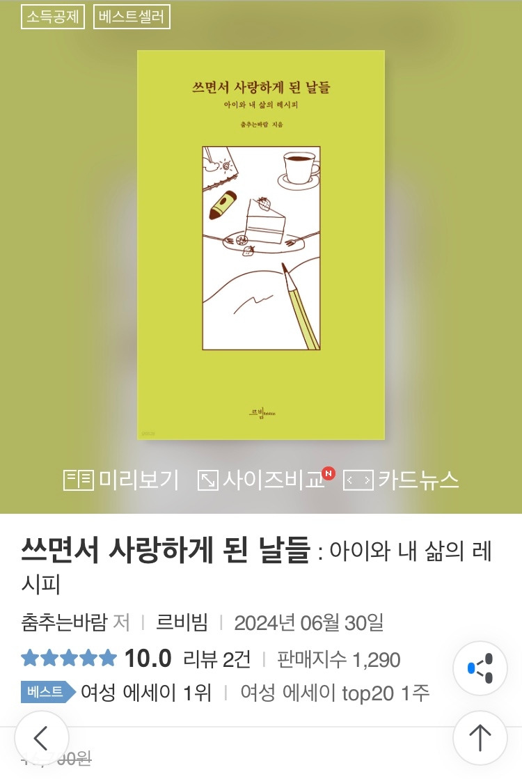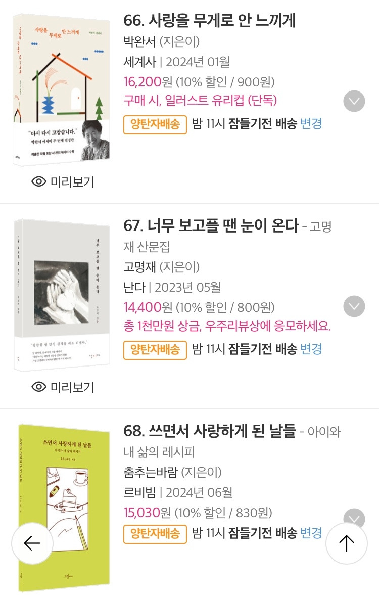 감사하게도 여성 에세이 분야 1위에 오르기도 했고요.