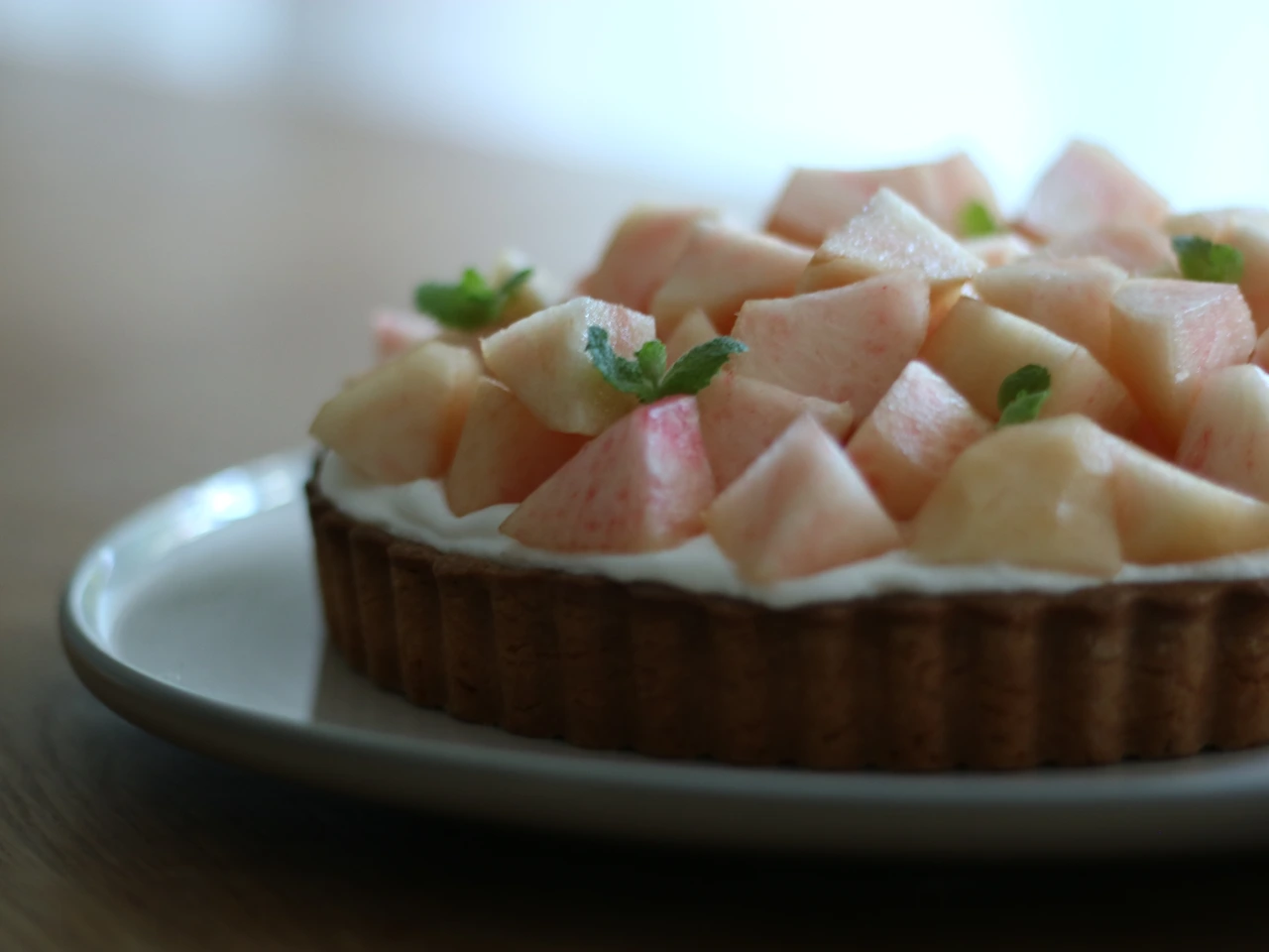 여름이 가기 전 올해의 복숭아를 나만의 방식으로 기념하고 싶어 복숭아 타르트를 만들었다. 사랑하는 것을 엮어 나만의 의미망을 짓는다. 여름, 여행, 복숭아, 첫 경험(임신과 출산), 첫사랑(아이와 육아라는 진한 사랑), 그리고 ‘콜 미 바이 유어 네임’. 환희와 고통, 변화와 상실, 세계의 확장을 통한 너와 나의 지속. 그 모든 의미망의 중심에 타인과 세계를 향해 나를 열게 하는 우리 안의 연약함과 순수함을 담는다.