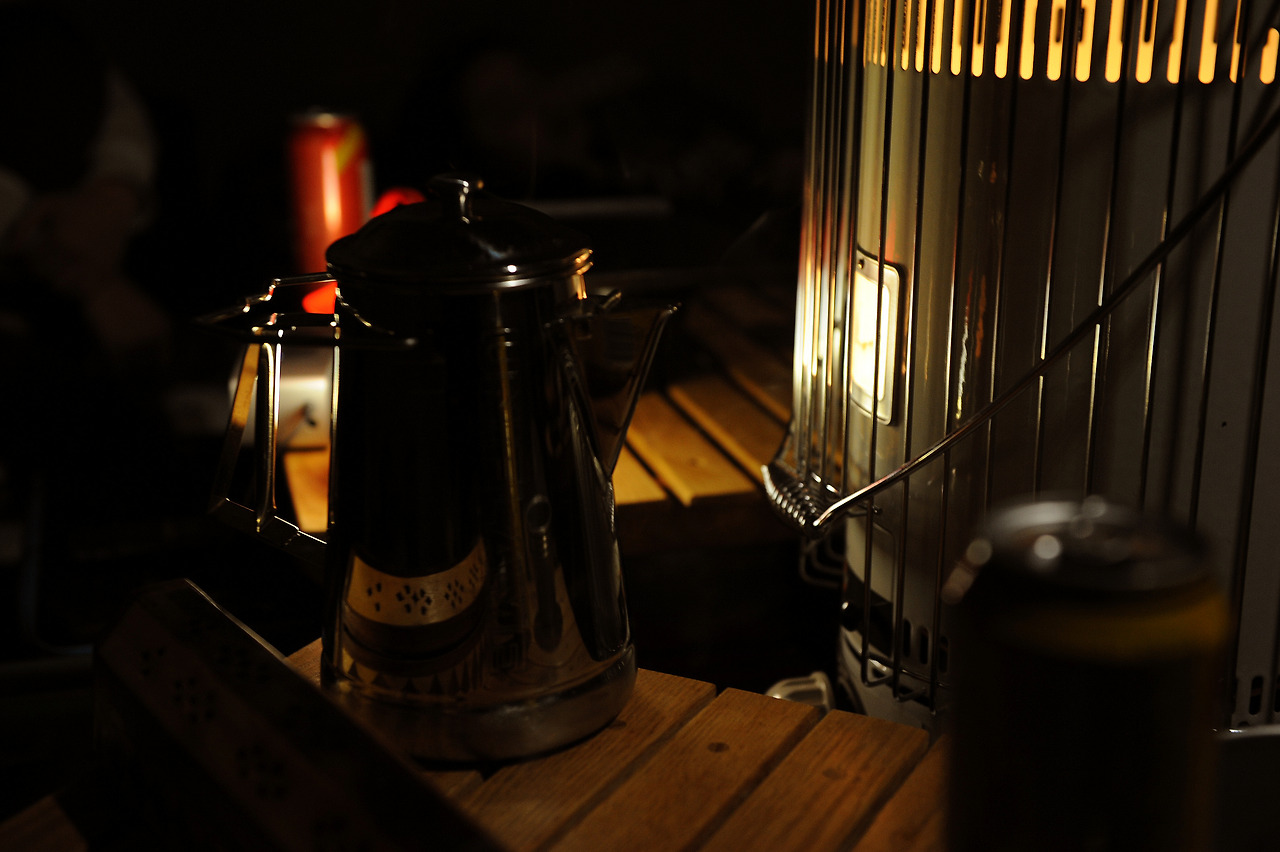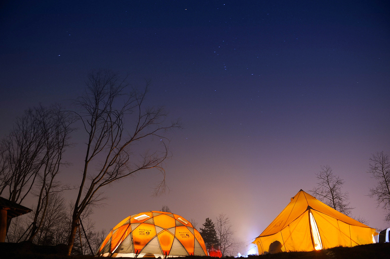 늦은 저녁, 서둘러 2박 3일간 있을 보금자리를 만든다음, 우리가 따듯한 난로가에서 따듯한 차 한잔 마실수 있는 여유 ...