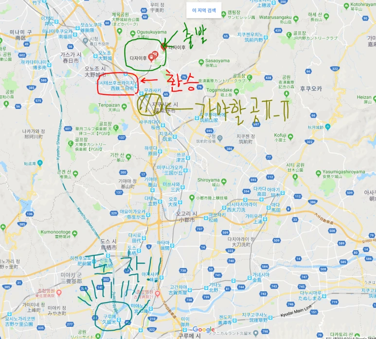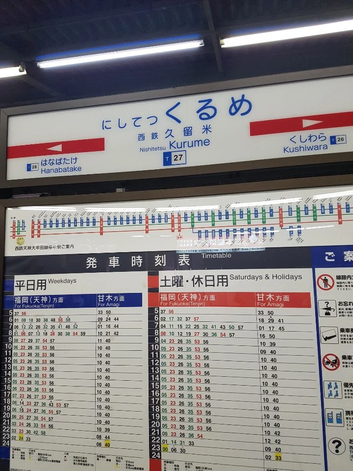 구루메라는 역까지 가고 만다.