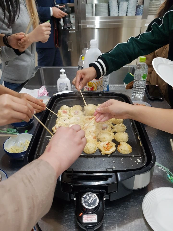유학생들과 몇 버디들과 함께 열심히 타코야끼를 만들어 먹었다.
