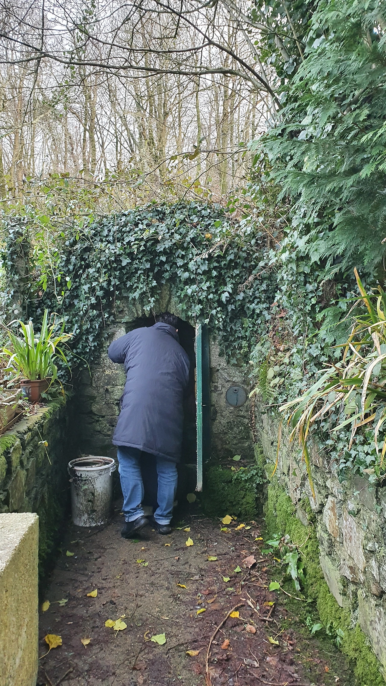 저기 초록색 대문을 열면 작은 성모마리아상이 벽이 붙어 있고 아래로는 우물이 하나 있다.