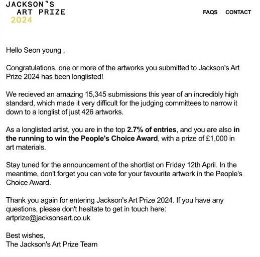 출품했던 미술상에서 한 점이 롱리스트에 올랐다는 소식이었다.