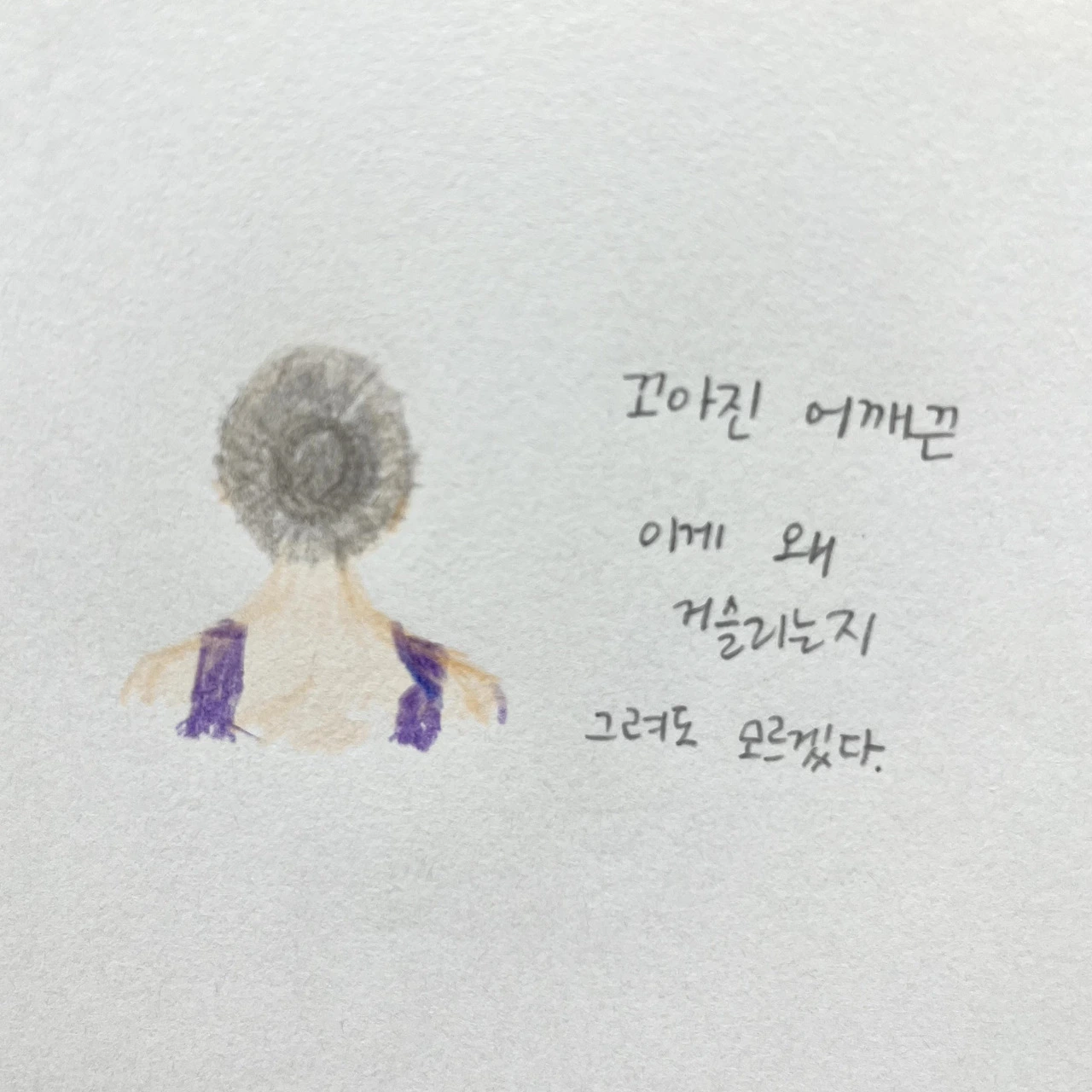 내가 외적인 것에 별로 관심이 없는 사람인 것을 아이 키우면서 확실히 알았다. 사회 초년생일 때 가방도 사보고, 머리색도 바꿔보고, 네일도 받아보고 꾸미려고 노력했던 건.. 에너지 넘쳐서 남들 따라 그 흐름에 잠깐 올라탔던 거다. 일단 단장하려고 어디 오래 앉아있고 누워있는 게 너무 피곤하고 시간이 아깝다. 그럴 시간에 집에서 누워있고 싶어서 깨끗하고 단정한 적당한 행색으로 타협했다. 레오타드도 뒤집어 입지 않으면 다행이다 싶을 정도로 막 입고 다녔다. 그때마다 원장님이 늘 옷매무새를 다듬어 주시고 레오타드에 꼬아진 어깨 끈을 매만져주셨다. 그 섬세함이 참 감사하다 생각하던 어느 날, 또 조용히 어깨 끈을 바로잡아주시다 진지한 말투로 눈에 계속 거슬려서 저절로 만지게 된다고 말씀하셨다. 그 이후로 거슬리지 않으려 연습실 나설 때 옷매무새를 꼭 체크하게 되었다.