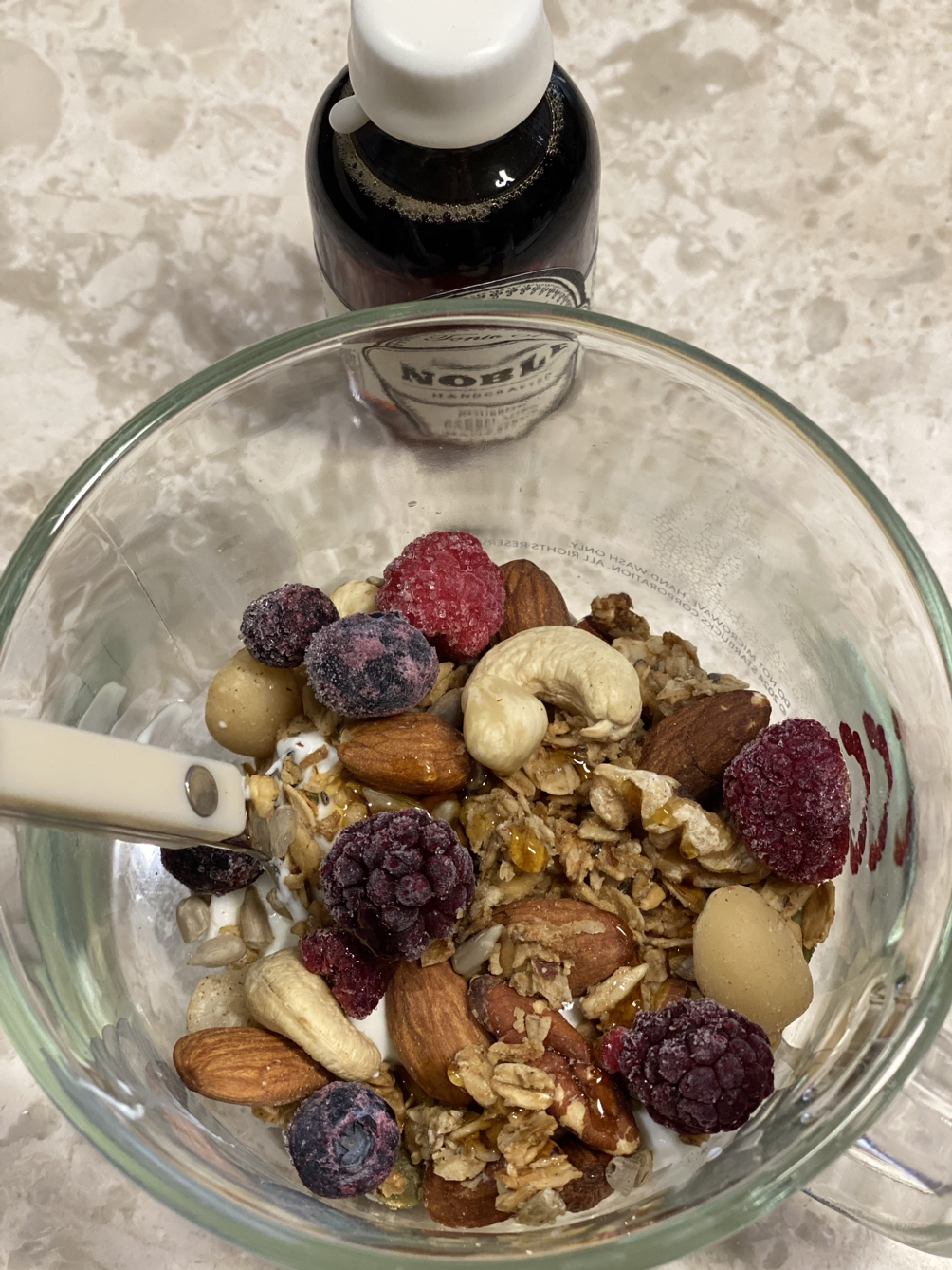 꾸덕진 요거트에 각종 견과류와 베리류를 얹고 사랑하지않을 수 없는 메이플 시럽을 둘렀다