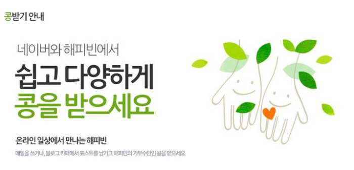 먼저, 해피빈이란 NHN(네이버)과 재단법인 해피빈이 함께 운영하는 기부 포털입니다.