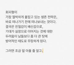 이해의 손짓까지 요구하진 않겠다. 다만 여러분들의 주위에 나와 같이 상황과 환경을 회피하는 사람들을 한 번만 더 주의 깊게 봐줬으면 한다. 또 나와 같은 회피형 인간들에게도 두 마디만 전하고 싶다.