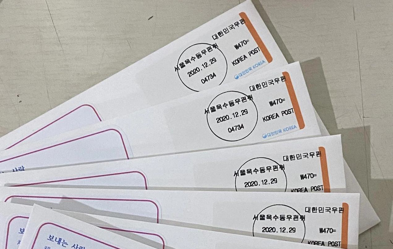 연휴 첫날에는 새해를 앞두고 2020년 자주 만나지 못했던 그러나 각자의 사정으로 고단했던 9명에게 카드를 썼었다. 1명을 더 채우고 싶었는데 미처 채우지 못한 채로. 만날 수 없으니 주소를 적고 우체국에서 우표를 붙여 편지로 부쳤다. 등기도 아닌 일반 우편으로. 일반 우편은 편지를 받는 수신인에게도 발신인에게도 따로 알림이 가지 않는다. 그냥 무심히 툭 우편함에 꽂히는 것이다. 발송 도중에 사라질 수도 있다. 그러니 서프라이즈 카드. 연말에 도착했으면 하는 편지는 1월의 첫 월요일에 도착할 예정인데, 그게 바로 내일이다.