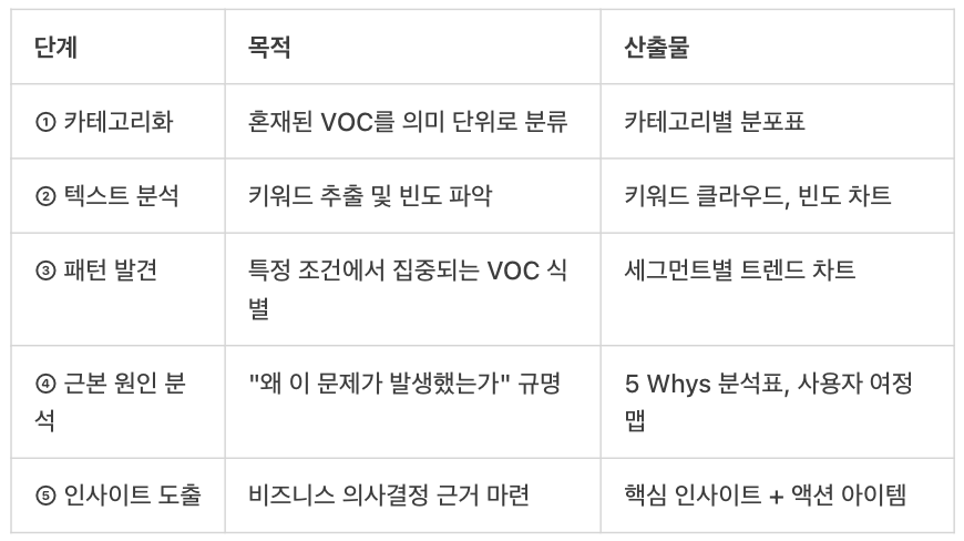 VOC 분석의 핵심은 흩어진 글자를 액션 가능한 인사이트로 전환하는 것입니다.