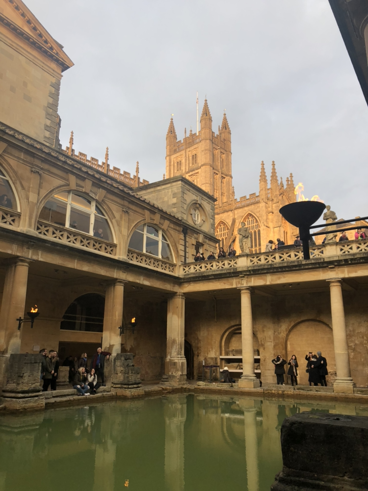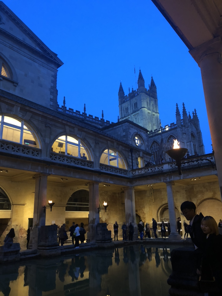 전세계에서 이곳 로만바스를 찾는 사람들이 많았다. 옛 로마제국 시절 인기 못지 않았다. 한국어로 된 오디오 가이드도 있어서 설명도 들을 수 있고 관람이 더 즐거웠다. 박물관 내부가 넓진 않지만 로마시대 사람들의 생활 모습과 그들이 온천을 즐기던 모습을 자세하게 설명 들을 수 있고, 지금은 어떻게 복원되어 공개되는지도 상세하고 재밌게 알려주어서 꽤 알찼다. 우리가 기대한 것은 해가 지고 난 후에 횃불을 켠 로만 바스의 모습이었다. 11월이면 벌써 해가 빨리 지기 시작하기 때문에 4시반부터 퇴장 시간인 6시까지 횃불 켠 야경의 로만 바스를 볼 수 있었다.