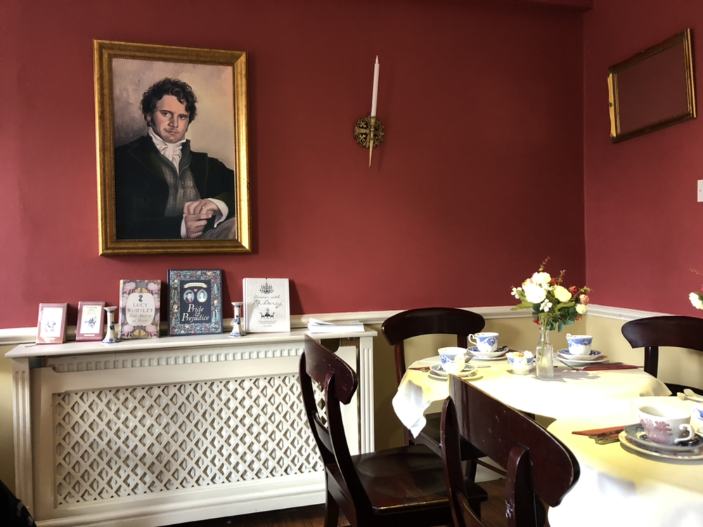 제인 오스틴 박물관은 1층과 2층은 박물관, 티룸은 3층으로 되어있다. 박물관 입장료를 제시하면 티룸에서 할인을 받을 수 있다. 티룸은 6명 이상만 예약이 가능하다 해서 예약을 못하고 갔더니 혹시나 사람이 붐빌까하여 걱정했지만 다행히 자리가 많았다. 우리가 자리를 잡은지 30분쯤 지나자 곧 사람들이 꽉 차기 시작했다. 벽면 한 가운데는 BBC드라마에서 다아시 역으로 분한 젊은 날의 콜린 퍼스가 그려진 액자가 걸려있었다. 삼단 트레이에 나온 애프터눈 티의 메뉴 이름은 'Tea With Mr. Darcy'. 블렌딩 차 이름도 'Jane Austen'이라는 차를 골랐다. 아래층 샌드위치부터 먹기 시작해 가운데 칸의 스콘까지는 매우 감동적인 맛이었다. 특히 스콘이 고소해서 정말 맛있었다. 맨 윗칸까지 먹으려니 이미 위장이 밀가루 포화상태가 되기도 했고 또 당수치가 너무 높아져 몸에서 구조신호를 보내고 있었다.