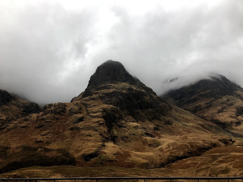 하일랜드 여행의 하이라이트인 글렌코(Glencoe)에 가면 세 자매(Three sisters)라고 불리는 세 개의 봉우리가 있다. 세 자매라는 이름에서나, 이 세 봉우리를 감싸는 자욱한 안개와 음침한 분위기에서나, <맥베스>의 세 마녀가 천둥과 번개와 비를 동반한 어느날 다시 만난다면 그 장소는 바로 이곳, 글렌코일 거라는 생각이 들었다. 지형 때문인지 잠시 내렸을 뿐인데도 거센 바람이 몰아쳤다. 고대 화산 폭발로 이런 지형이 만들어졌다고 하는데, 광활한 황야에 봉우리가 덩그러니 놓여있다.