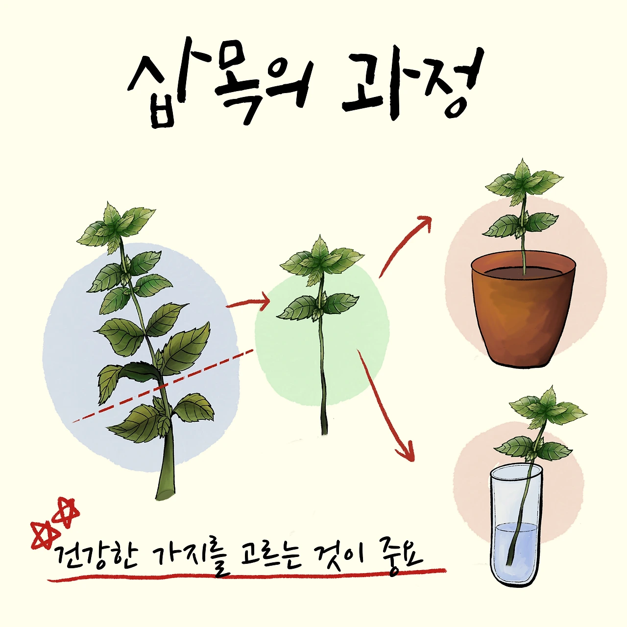 비바람으로 인해 줄기가 애지중지 키우던 줄기가 부러졌을 때, 혹은 다 죽어가는 식물의 줄기 중 아직 살아 있는 일부의 줄기라도 살려 보고 싶을 때, 아니면 씨앗을 심어서 키우는 파종보다는 조금 더 빨리 식물을 번식시켜 키우고 싶은 때 가장 좋은 방법 - 바로 삽목이다.
