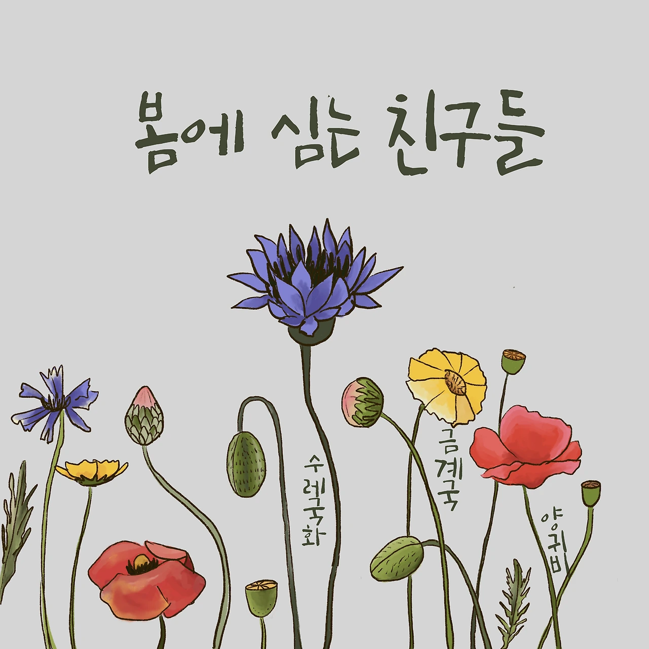 양귀비, 수레국화, 금계국