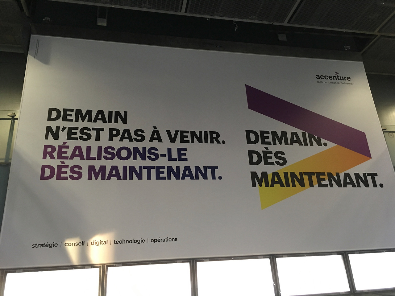 Demain n'est pas à venir. Réalisons-le dès maintenant. Demain. Dès maintenant. (드망 네빠자브니흐. 헤알리종르 데 망뜨넝. 드망. 데망뜨넝. )