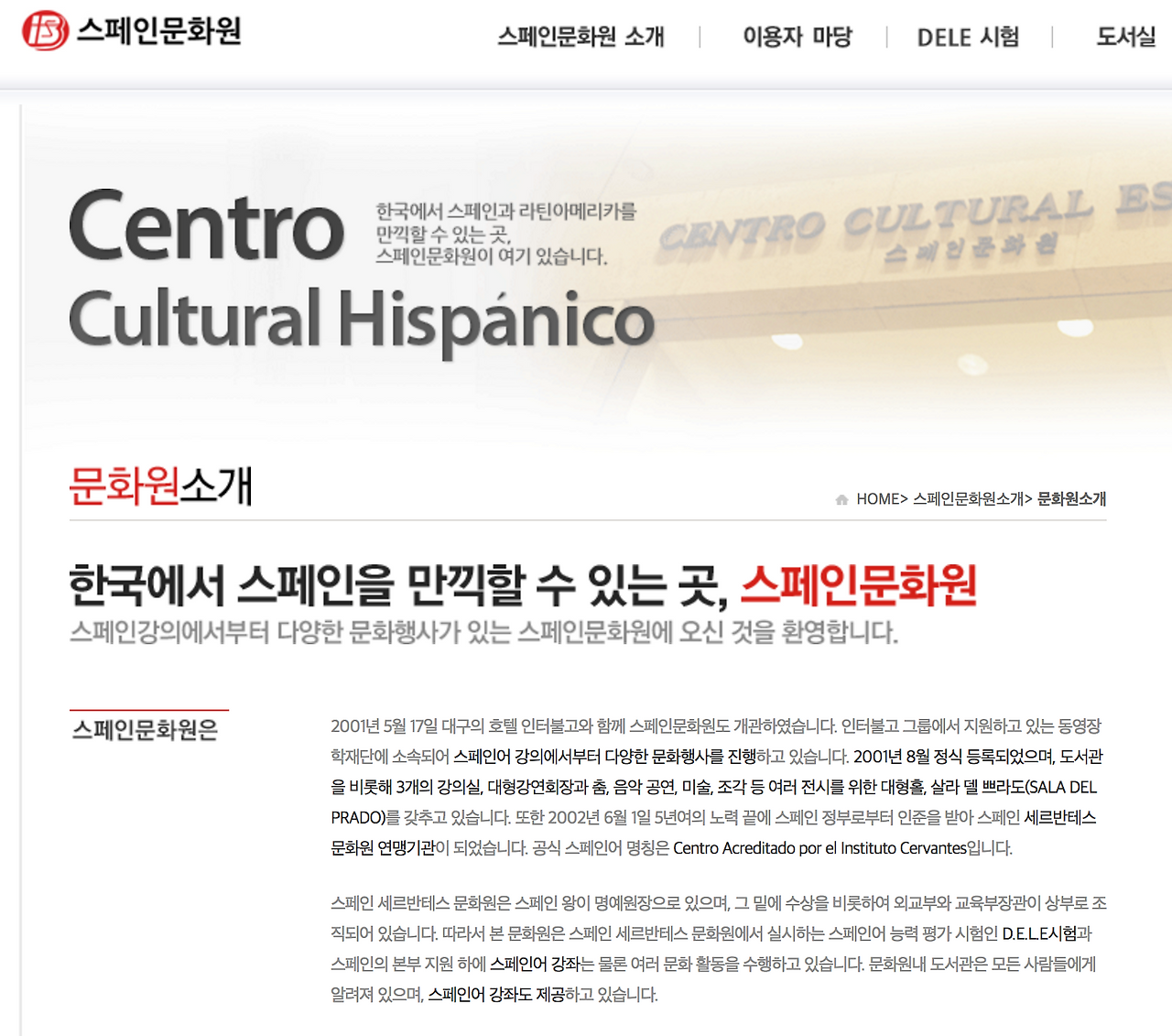 제일 처음 시작은 그 나라의 전반적인 분위기를 알아보고 거기에 친숙함을 찾고 또 동기를 부여하는 일이다. 가장 좋은 것은 그 나라의 문물을 여과없이 그것도 적극적으로 소개하기 위해 만들어진 '문화원'을 방문하는 것이다. 지난 독일어와 프랑스어 시절에 많은 도움을 받았고, 국내에서는 구하기 어려운 양질의 도서자료도 접할 수 있었다. 무엇보다 현지에 성큼 다가서는 매개체이자 언어를 배우는동안 베이스캠프가 되어준다고 할까. 하지만 아쉽게도 스페인문화원은 내가 거주하고 있는 서울이 아닌 대구에만 있는 것을 알게 되었다.