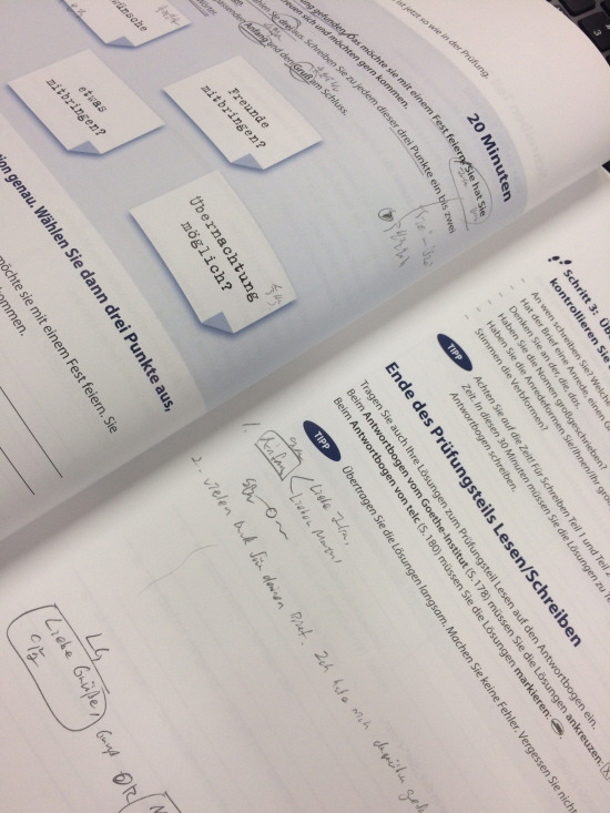 휴.. 독일어로 된 독일어시험 교재. 도전적이긴 하지만, 최대한 독일어 환경에 익숙해져야 하는 만큼 필요한 부분이다.
