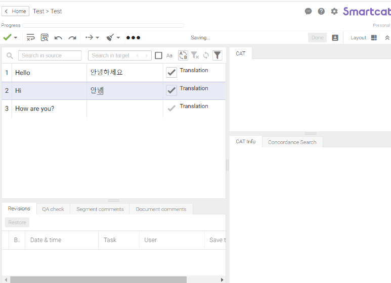 이름만 보아도 똑똑하고 귀여운 거 같지 않습니까? 저의 첫 번역 툴은 Smartcat과 시작했습니다. 와 혁신이더라고요. 그동안 제가 정말 바보같이 시간을 낭비하고 있다는 것을 알았지요.
