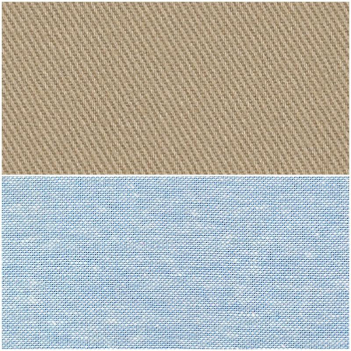트윌 원단 (위) / 옥스포드 원단 (아래)