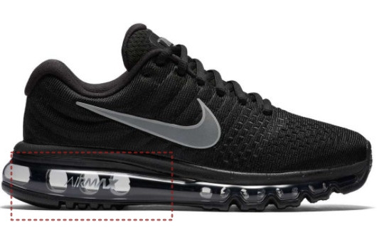 (점선 표시) 에어가 바깥으로 노출된 구조. ⓒNIKE