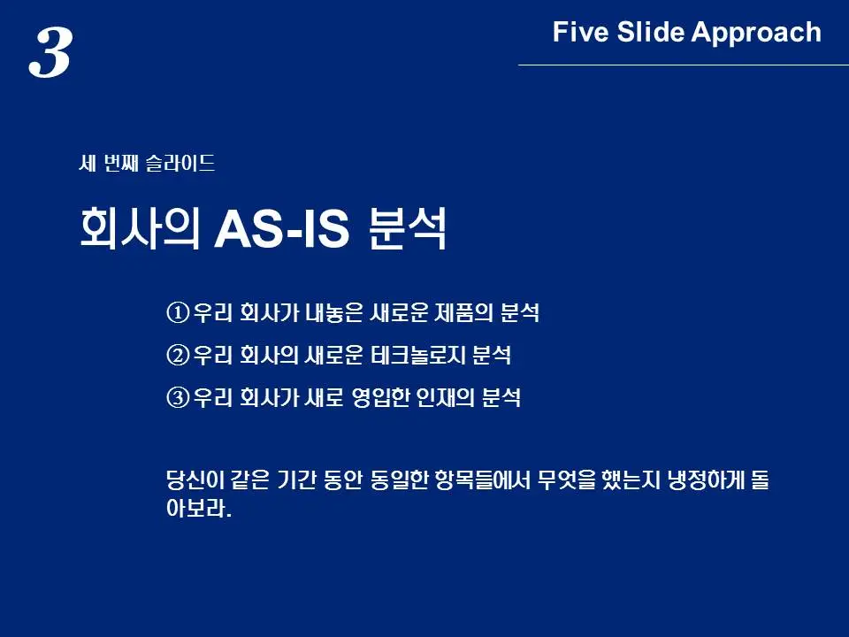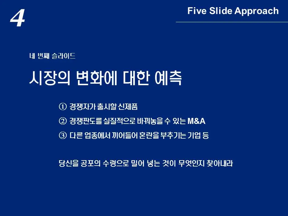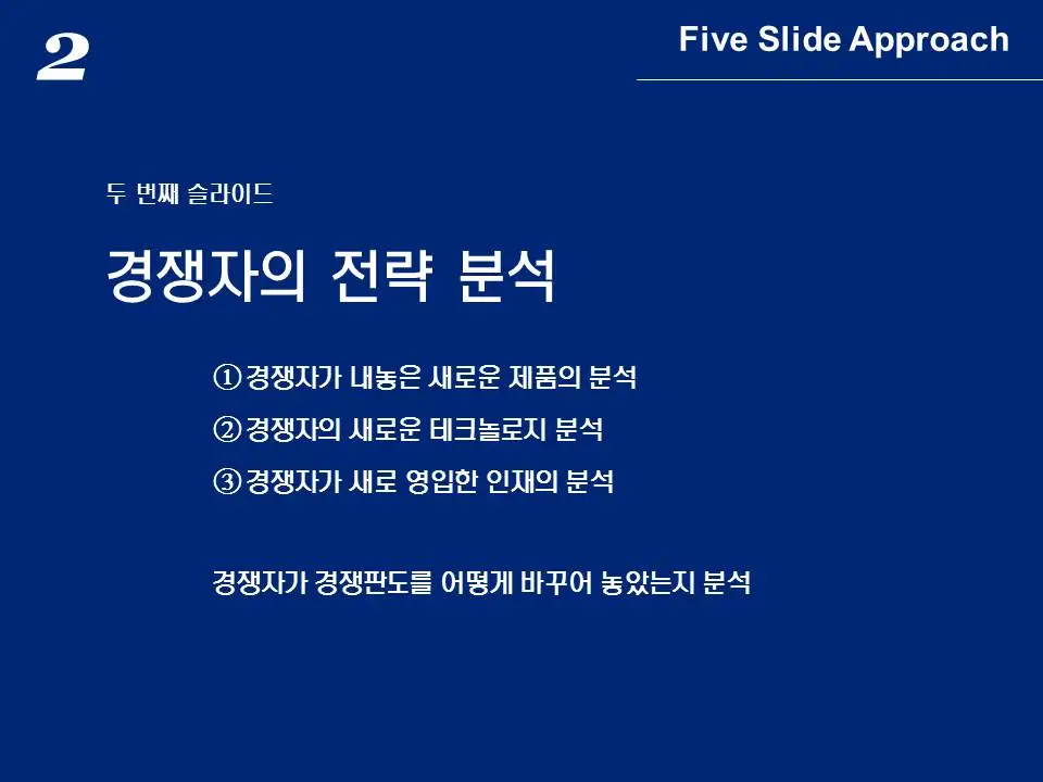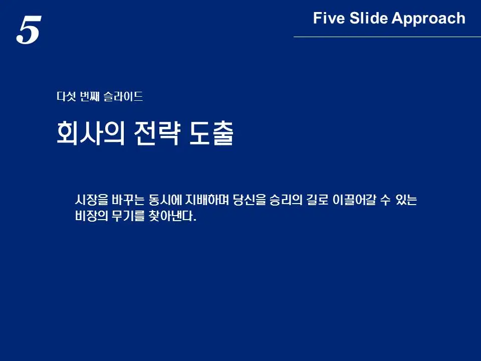 마지막으로 지금까지 파악한 사항을 토대로 5번 슬라이드에서 최종 전략을 도출하게 됩니다.