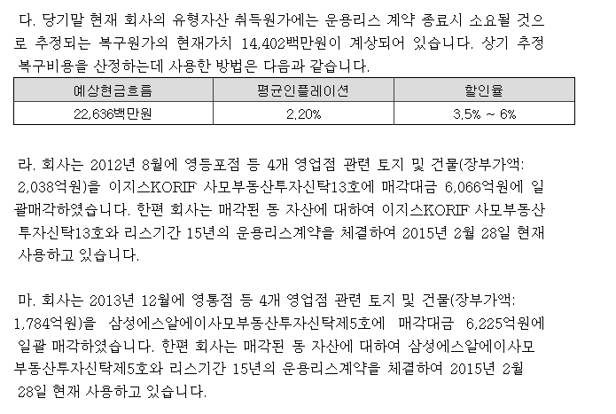 홈플러스의 사례가 판매후리스 거래의 장단점을 잘 보여주고 있는 것 같습니다.