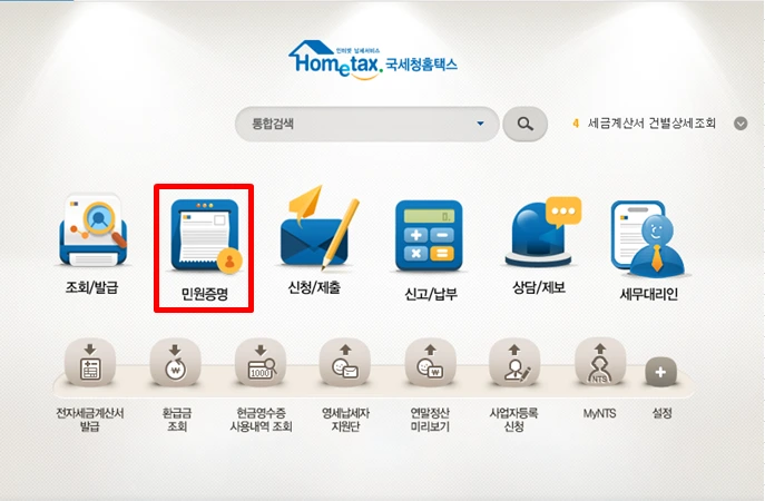2. [민원증명] 클릭