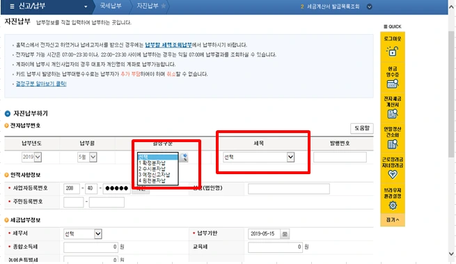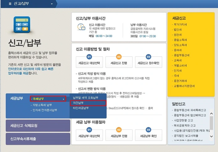 3. 세금 납부 → 국세 납부 → 자진 납부