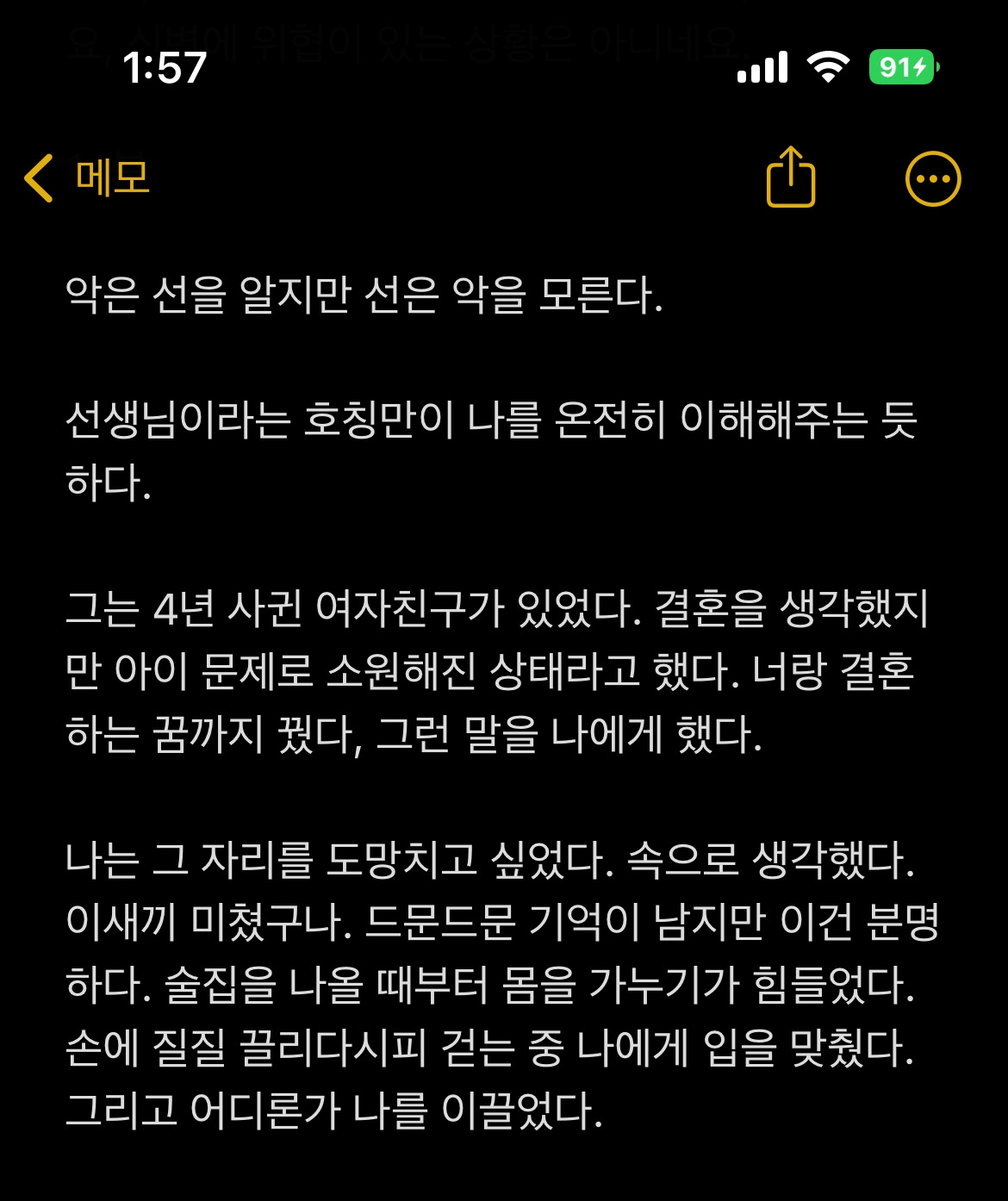 거기까지 생각이 미치자 나는 더 이상 강간을 마냥 모른다, 고 하기는 어려웠다.