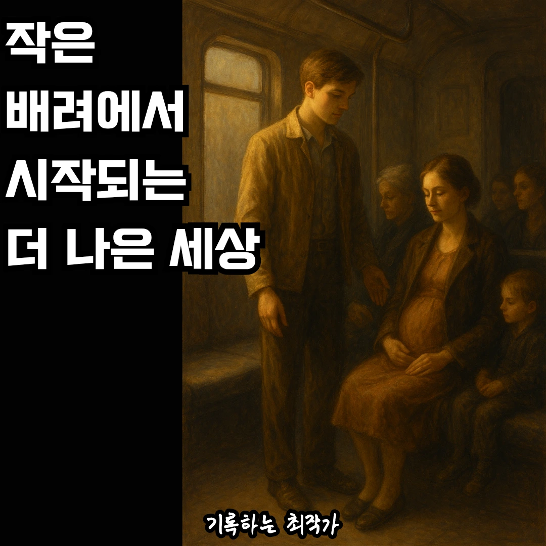 그것은 멀고 어려운 이상처럼 보이지만, 어쩌면 지금 당장 내가 자리를 양보하는 그 작은 순간에서 시작될 수 있다.