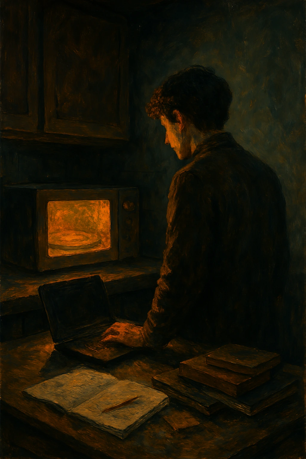 어둠이 내려앉은 부엌, 고요를 깨우는 건 전자레인지의 묵직한 울림이다.