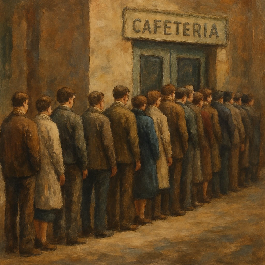 식당 앞에 늘어선 줄은 한 폭의 풍경화처럼 길고도 느렸다.