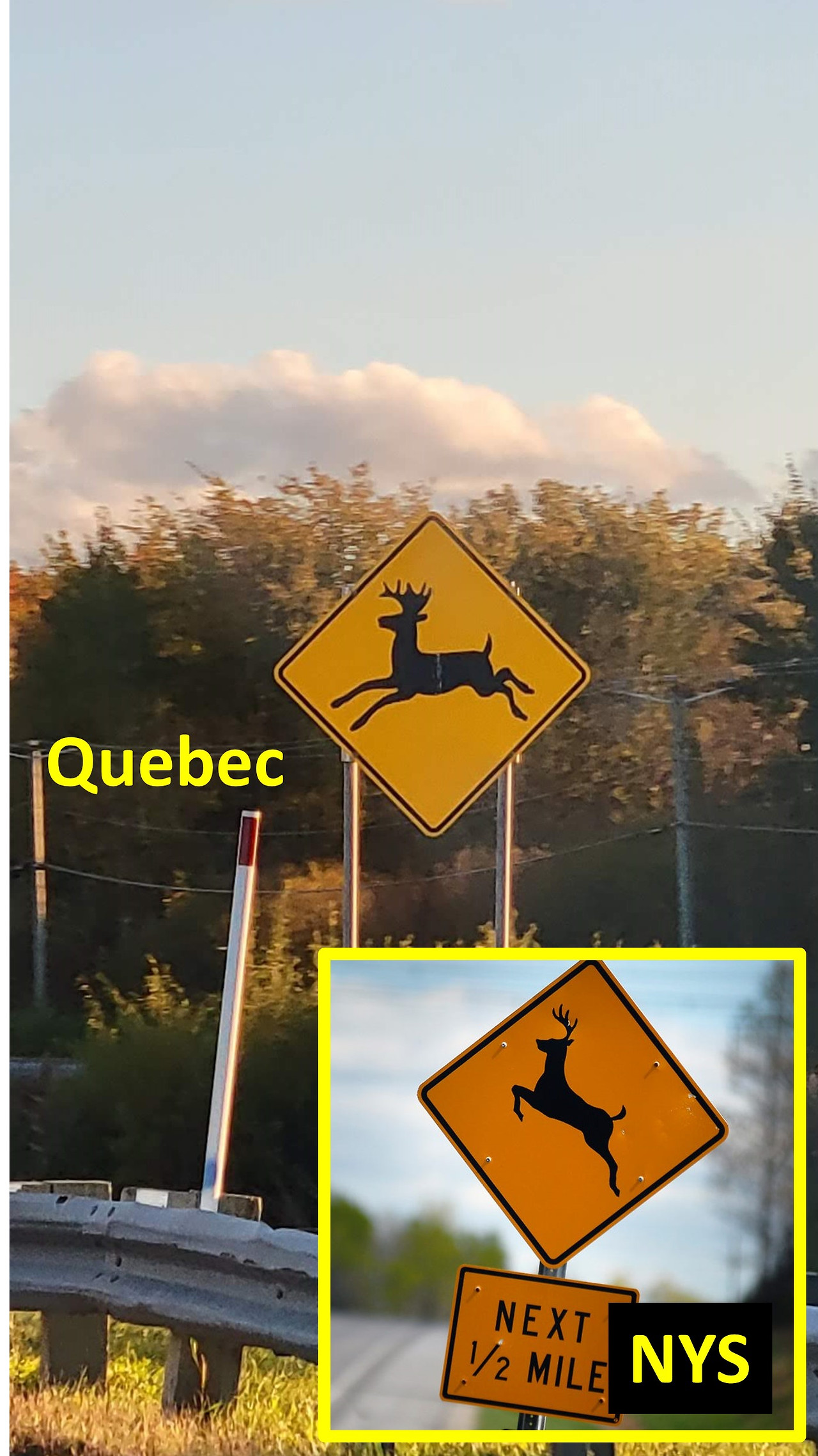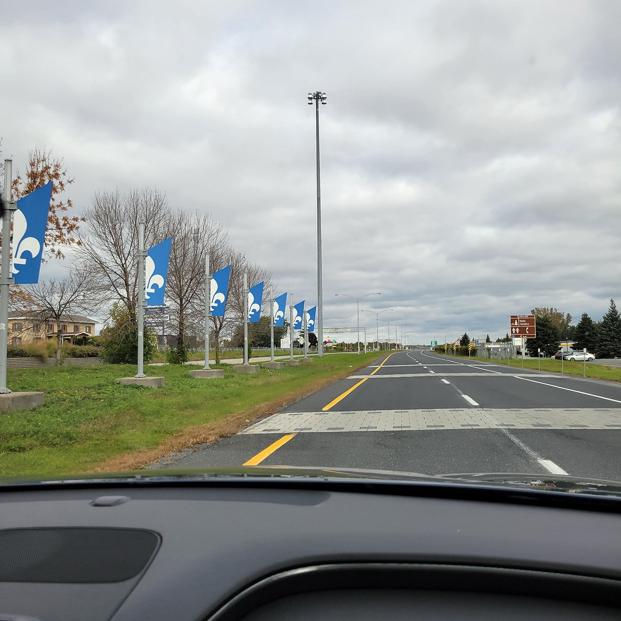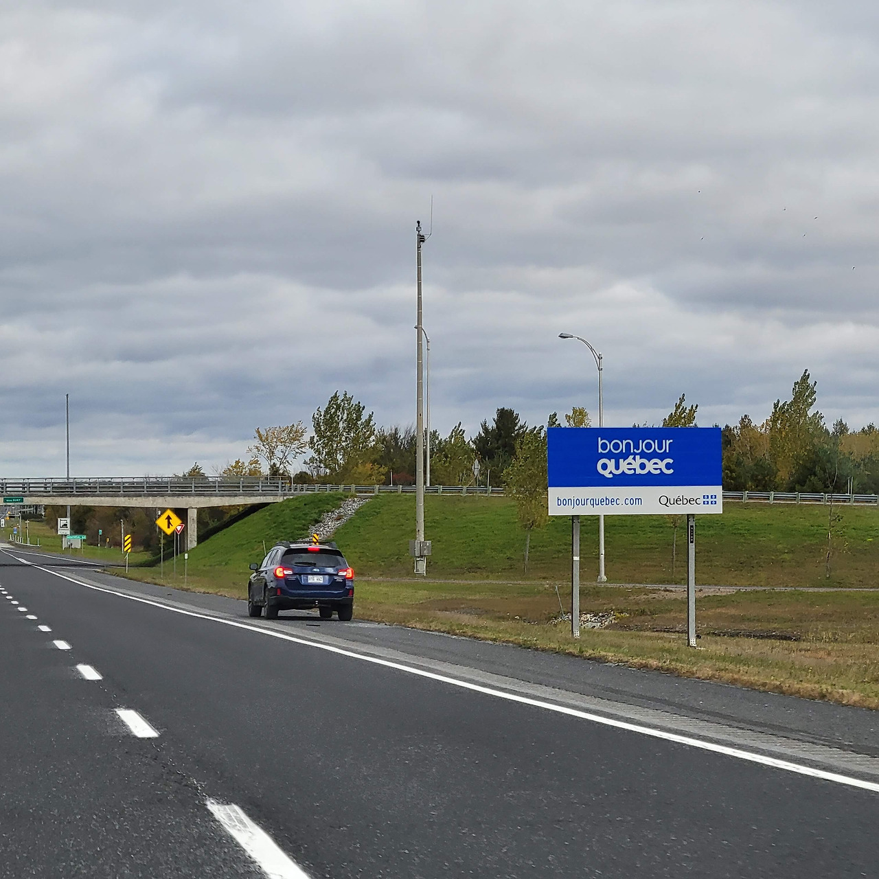 그렇게 우리는 '단풍국' 캐나다에 입국한다. 검문소를 빠져나오니 속도의 단위가 mile/h가 아니고 km/h라는 교통표지판이 줄지어 나타나고 퀘벡에 온 것을 환영한다는 프랑스어 표지판이 우리를 반겨주고 있었다.